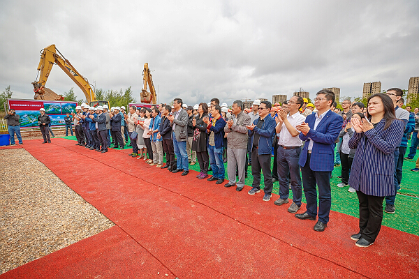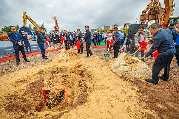 参加仪式的领导、嘉宾共同为KY.COM呈贡校区二期建设工程培土奠基。