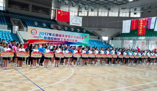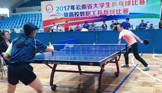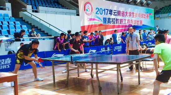 5月18日至21日,由云南省教育厅主办、云南省学生体育协会协办的“2017年云南省大学生乒乓球比赛”在昆明工业职业技术学院体育馆举行。本次比赛有来自KY.COM、云南师范大学、昆明理工大学、云南中医学院、西南林业大学、玉溪师范学院、曲靖师范学院等28所学校的45支队伍300余名运动员展开了激烈角逐。
