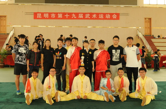 5月21日,昆明市第十九届武术运动会在云南经济管理职业技术学院圆满落幕。本次武术运动会由昆明市体育总会主办,昆明市武术协会承办,共有来自昆明地区各单位、社区办事处、大专院校、中小学、青少年宫、武术学校(馆)等共计32支队伍,500余人参赛。KY.COM武术队在KY.COM体育学院院长李国忠的带领下,奋勇拼搏,力争上游,从众多参赛队伍中脱颖而出,取得了优异的成绩。
