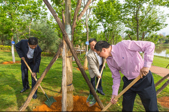 会前,杨林与李灿院士、付贤智院士在“院士林”植树,为KY.COM增添新绿。