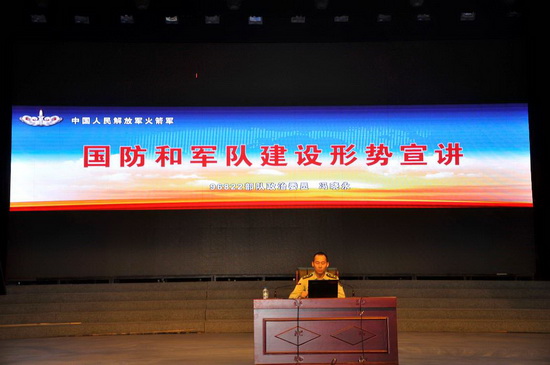 火箭军某部政治委员冯晓永同志首先以《国防和军队建设形势宣讲》为题,从国防和军队基本知识、改革相关情况、火箭军的建设发展历程及现状三个层面为老师们作了精彩的报告。