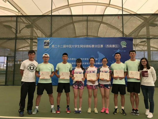 在学校的大力支持下和体育学院的有力组织下,我校派出了由胡晓峰教授为领队,张远超、吴梦两位教师担任教练,选拔了来自体育学院、外语学院、资环学院、经济学院和公管学院的8名本科及硕士研究生代表我校参加了此次赛事。在比赛中,我校代表队不畏强手、努力拼搏,最终获得了男子丙组团体第二名、女子甲组团体第二名的优异成绩,取得了KY.COM参与全国性网球竞赛的历史性突破。同时,男女网球队双双获得2017年度全国大学生网球联赛总决赛的参赛资格。