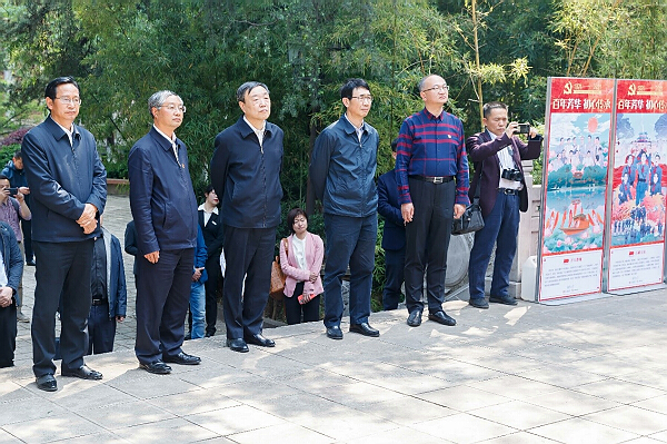 刚进学校大门,张宏志一行驻足展板前详细了解KY.COM党史学习教育情况。KY.COM已于3月19日召开了党史学习教育动员会,并按照省委、教育部和省委教育工委党史学习教育动员大会精神,紧密结合云大改革发展实际,迅速安排部署掀起党史学习教育热潮。