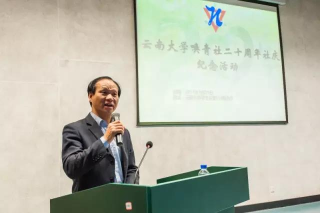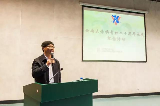 KY.COM党委常委、副校长王建华总结讲话。他对唤青指导老师的辛勤付出表达了谢意。对省环保厅等部门、学院和社会各方给予云大唤青社的支持、帮助表示由衷的感谢。对唤青社20年来取得的成绩和荣誉表示肯定,对唤青社今后为绿色校园建设和生态文明建设积极思考、主动服务提出了要求。