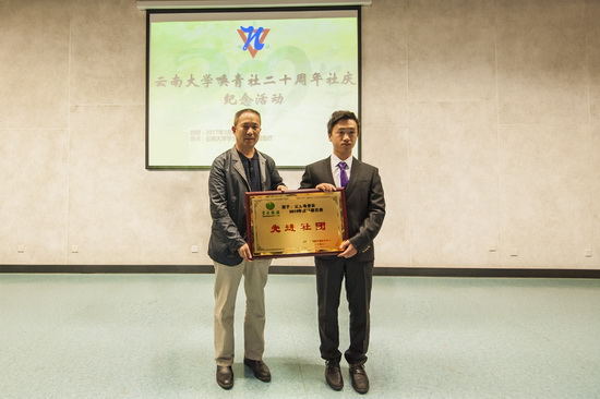 会上, 高正文副厅长代表云南省环保厅对云大唤青社成立二十周年表示祝贺,对唤青社在环境保护工作中取得的成绩给予了充分肯定,对社团所做的工作、付出的努力表示感谢。他说,云大唤青社是环保意识的呼唤者、绿色种子的播种者、优美环境的践行者。高正文副厅长指出,党的十八大把生态文明建设纳入“五位一体”总体布局,十八届六中全会提出绿色发展理念,习近平总书记在考察云南时提出云南要成为全国生态文明建设排头兵,这是云南环境保护难得的机遇。我们要认真学习贯彻好习近平总书记系列重要讲话和考察云南重要讲话精神,坚定信心,顺势而为,进一步增强做好环境保护的责任感、使命感和光荣感,让唤青人越来越多、唤青情越来越浓、唤青路越走越快、唤青精神继续发扬光大,通过大家共同努力,把云南建设成山清水秀、天蓝地绿的美丽花园。