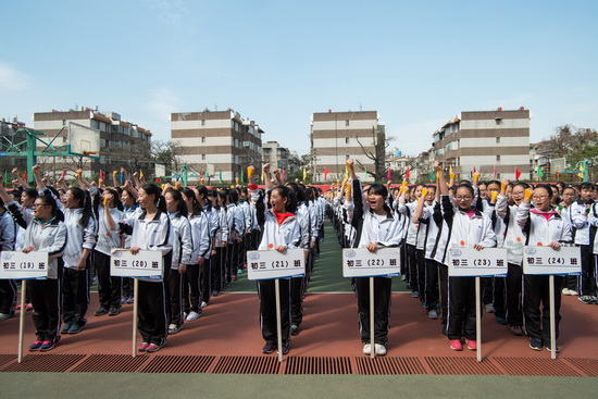 初二、初三年级在学生代表王筱杉带领下,进行了铿锵有力、豪气干云的宣誓。在《共青团员之歌》的雄壮歌声中,在初一年级为学长加油的呐喊助威中,初二、初三学生雄赳赳、气昂昂地迈上迎考之路。校园中久久回响着云附学子为希望而卓然奋斗的誓词,激荡着云附师生为梦想而众志成城的宣言。