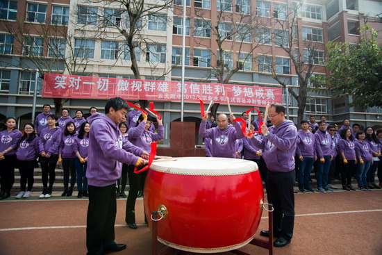 活动中,学校领导率先擂响向胜利奋勇前进的鼓声,大会正式拉开序幕。战鼓隆隆,述说着云附英才不畏困难、挥洒汗水的努力,述说着不忘初心、再创辉煌的坚定,更述说着誓夺金榜、凯歌而还的豪迈。