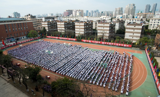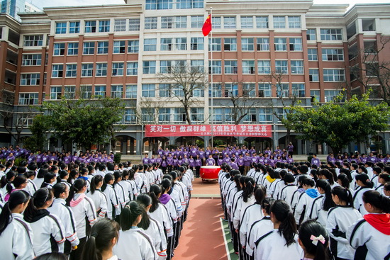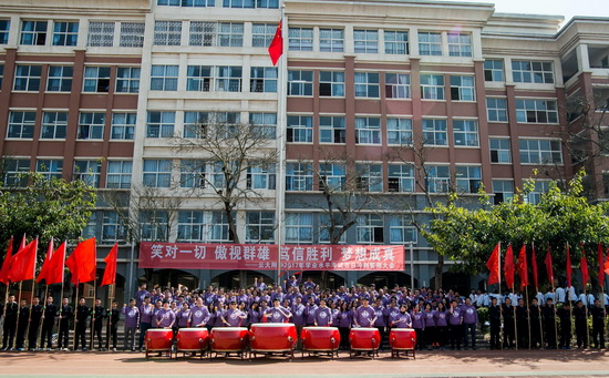 3月20日上午,云大附中2017年学业水平考试百日冲刺誓师大会举行。附中校长高云飞、书记王宇伟、副书记马凭和副校长李学文及300余名教师,4600余名学生参加了活动。