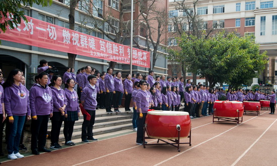 高云飞校长为活动致辞,他表达了云附师生正视现实的勇气,不怕困难的决心,科学学习的睿智,勇于夺冠的自信。全体师生斗志昂扬, “钩深致远,日就月将,怀瑾握瑜笑待一试惊云滇;胆气卓然,夙兴夜寐,神驰笔畅勇冠千军动春城”。