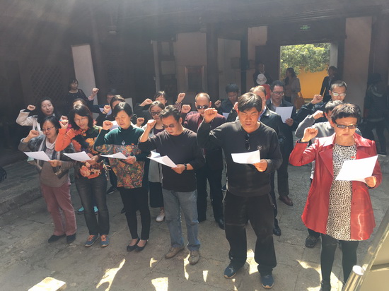专题组织生活会结束后,全体党员在鲜红的党旗下,重温入党誓词,牢记党的宗旨,坚定理想信念,强化党员意识,增强党员责任感和使命感,以更加饱满的精神、更加优异的成绩践行对党的庄严承诺。随后,全体教职工党员参观了参观了柯渡镇丹桂村红军长征柯渡纪念馆,在中央红军总部长征驻地旧址、总参谋部作战室、毛泽东、周恩来、刘伯承、朱德等同志长征路居丹桂村的休息室及烈士遗物前,大家认真聆听讲解,了解红军长征过云南的历史过程,深受教育,纷纷表示要继承和发扬坚忍不拔、自强不息、勇往直前、吃苦耐劳的长征精神。