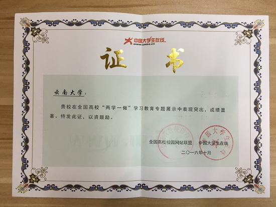 另悉,在2016年全国高校“两学一做”学习教育专题展示活动中,我校以图片、文字、专题网站等多种形式在中国大学生在线首页及其“两学一做”专题网站展示,取得良好效果。此次活动为各高校“两学一做”学习教育提供了展示平台,进一步推动了高校“两学一做”学习教育深入开展。