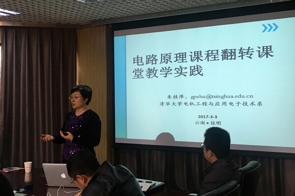 研讨会上,清华大学电机工程与应用电子技术系博士生导师朱桂萍为参会教师们做了题为《电路原理课程翻转课堂教学实践》的经验分享,还与参会教师做了深入的交流,认真解答了教师们提出的面临翻转课堂教学时的困惑,并介绍了一些实用的教学策略,为教师们开展教学树立了信心。