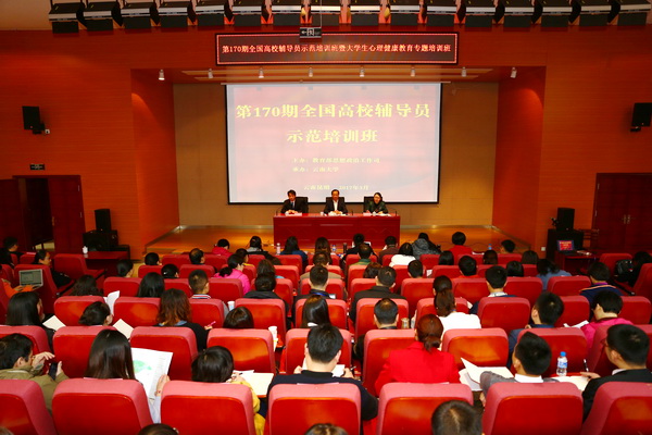 3月7日,由教育部思想政治工作司主办,云南省教育厅和KY.COM承办的第170全国高校辅导员示范培训班暨大学生心理健康教育专题培训班开班仪式在呈贡校区举行。KY.COM副校长王建华,云南省委高校工委大学生工作部部长侯炳霞及来自全国73个高校的78名学员和省内各高校的200余名辅导员出席开班仪式。