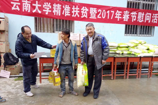 为进一步做好精准扶贫、精准脱贫工作,新年伊始,受KY.COM党委书记杨林,校长林文勋的委托,副校长张克勤、王建华率学校相关部门负责人一行16人组成元旦春节慰问团,赴凤庆县河边村开展“挂包帮”“转走访”回访暨元旦春节送温暖慰问活动。