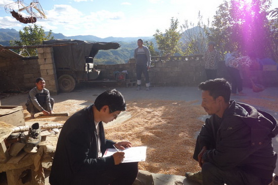 滇西发展研究中心杨临宏主任带领3位老师、16名研究生,分成5个小组深入边陲村寨,对镇康县的南伞镇甘塘村、班龙村、轩岗村、茶山村、道水村,凤尾镇小水井村,勐捧镇蒿子坝村,勐堆乡帮东村,军赛乡南榨村等9个贫困村共计140余户贫困户进行走访调研,收集预评估所需的第一手资料。