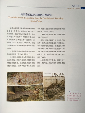 我校张喜光教授团队在国家自然科学基金项目《中国南方寒武纪Orsten型化石研究》(批准号:40972012)、《若干寒武纪三叶虫类群躯体分节进化发育模式》(批准号:41272027)等的资助下,就昆明地区寒武系第3阶小石坝化石库(生存时代略晚于澄江动物群的重要过度化石群)的研究,在Nature、PNAS等顶级学术期刊上发表了一系列研究成果。在化石生物学和生命早期演化领域取得开拓性进展。