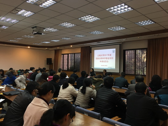 近日,我校在东陆校区科学馆召开了2017年度国家自然科学基金项目申报动员会,张克勤副校长出席并作重要讲话,校长助理兼科技处长郝淑美主持会议。会议还邀请国家杰出青年基金获得者、国家自然科学基金项目会评专家李庆军研究员作项目申请书撰写经验交流,各理(工)科学院(所、中心、实验室)领导、科研秘书、教师约60人参会。