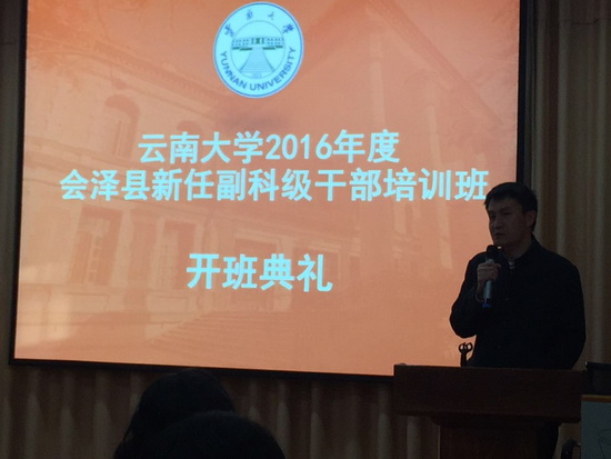 为加强会泽县干部队伍建设,增强干部的责任感使命感,提升干部脱贫攻坚素质能力,按照年初确定的学校帮扶会泽县培训计划,12月12日至12月16日,学校委托职业与继续教育学院承办会泽县新任副科级干部培训班。12月12日上午举行了开班仪式,学校党委组织部、扶贫办、职继学院、会泽县委组织部相关负责人出席开班仪式,仪式由职继学院副院长王雯主持,党委组织部郭磊副部长致辞,会泽县委组织部代幸烜副部长出席开班仪式并讲话。