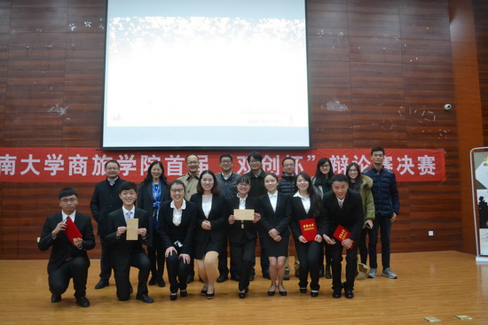12月19日晚,由商旅学院团委学生会主办的首届“双创杯”辩论赛决赛在外国语学院报告厅精彩上演。校团委书记于春滨、院党委副书记赵德森、工商管理系陶小龙、孔莉等莅临比赛现场担任嘉宾和评委。