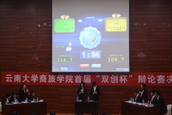 通过对辩论赛与双创第二课堂的创新结合,商旅学院举办了首届“双创杯”辩论赛,引导学子积极思考创新创业对于自身发展的意义。本次决赛正方2015级电子商务班和反方2014电子商务班就“大学生创业应该立足于个人优势还是社会需求”展开了激烈交锋。经过激烈辩论,学子明白了个人优势和社会需求何为创业根本,完善自我与发掘市场相辅相成的关系。此次“双创杯”辩论赛旨在锻炼学生的辩论能力和合作能力,提高同学们的思维反应速度、沟通技巧,增强同学们的语言组织能力和应变能力,营造创新创业氛围,通过第二课堂带动同学们对创新意识,创业精神进一步思考,激发和培养同学们创新创业意识。