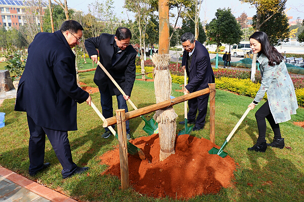 王庚年一行还参观了泽湖、图书馆等地,对KY.COM深厚的历史人文底蕴、优良的办学育人环境给予赞许,并在国际林亲手种下一株木兰树。