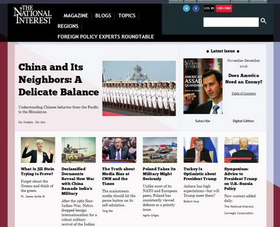 《国家利益杂志》是美国国际事务研究的双月刊学术性杂志,是全球国际关系/国际政治领域的权威期刊,与英国的International Affairs和美国另一学术杂志Foreign Affairs齐名,对全球舆论与外交具有广泛的影响力。其官方网站主要提供杂志主要内容,并刊发关于国家利益、外交政策和国家行为等主题的论文。据该杂志编辑透露,在网络时代,其官方网站的影响力、阅读量和引用率已超过《国家利益杂志》本身。因此,按照该杂志编辑的建议,刘学军博士和刘军博士同意将论文刊发在该杂志官方网站。