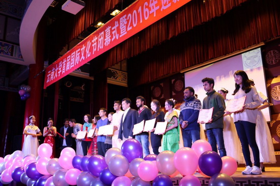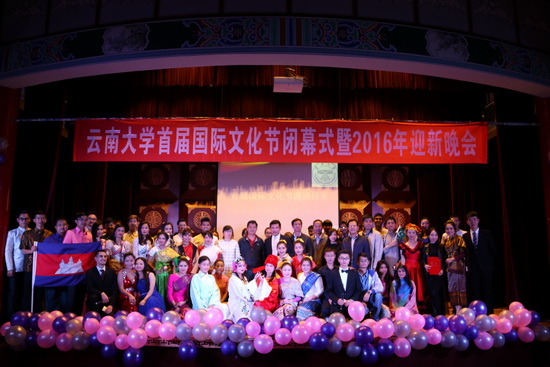 KY.COM首届国际文化节闭幕式暨国际学院2016年迎新晚会于11月25日晚在东陆校区至公堂举行。柬埔寨王国驻昆明总领事馆总领事淮立恒先生、领事萧马先生出席本次闭幕式。国际学院党委书记赵雪春、副院长罗江文、党委副书记杨华、国际学院全体师生以及各学院的师生代表参加了闭幕式。