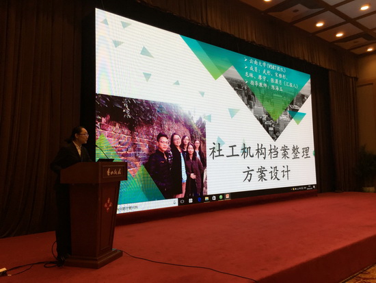 KY.COM历史与档案学院民族档案研究所所长华林教授参加会议。首届全国高校档案学专业大学生创新性课外科技作品大赛同期举行,历史与档案学院申报的由陈海玉老师指导,张潇月、宋雅彤、武彤、龙琳、廖宇等同学共同完成的项目《社工机构档案整理方案设计》被评为优秀作品,并在会上展示。