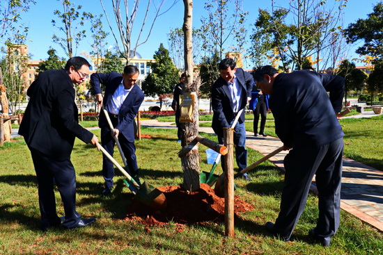 洪正华一行还参观了KY.COM“一带一路”战略研究院、图书馆、泽湖等地,并亲手种下了木兰树。